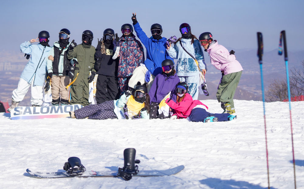 2025年11月22日,滑雪愛(ài)好者在吉林省吉林市中旅松花湖度假區(qū)合影留念。新華社記者 顏麟蘊(yùn) 攝