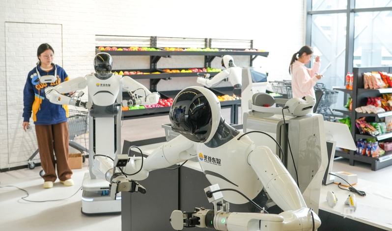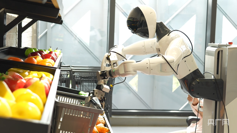 人形機(jī)器人在超市零售場景應(yīng)用訓(xùn)練(央廣網(wǎng)記者鄧子依 攝)