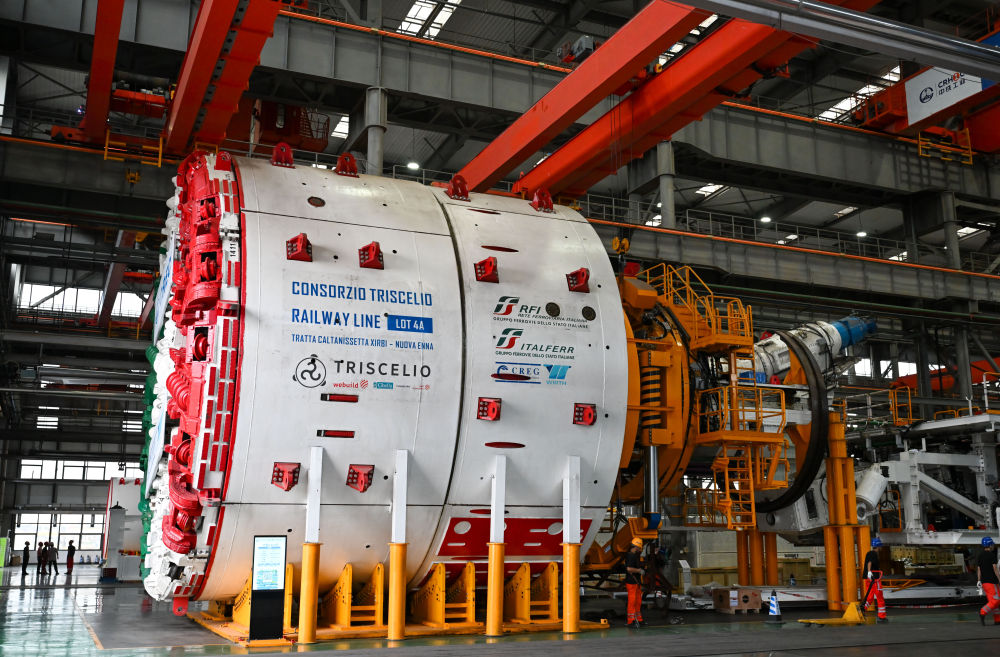 這是6月18日在天津自由貿(mào)易試驗區(qū)天津港東疆片區(qū)的中鐵工程裝備集團(tuán)(天津)有限公司拍攝的即將出口意大利的盾構(gòu)機(jī)。新華社記者 孫凡越 攝