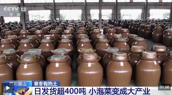 眉山“中國泡菜城”管委會經(jīng)濟發(fā)展局局長 胡春福:我們專門從原料、技術(shù)和企業(yè)三個方面出臺了相關(guān)的文件和幫扶措施,通過“企業(yè)+合作社+農(nóng)戶”模式,帶動了12萬農(nóng)戶人均年增收1.3萬元。目前全市泡菜全產(chǎn)業(yè)鏈產(chǎn)值已經(jīng)達到220億元。