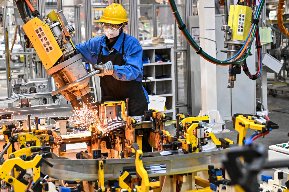 12月12日,在河南省商丘市豫商經濟技術開發(fā)區(qū)一家新能源汽車企業(yè),工人在新能源輕卡車生產線上趕制產品訂單。新華社發(fā)(李恒攝)