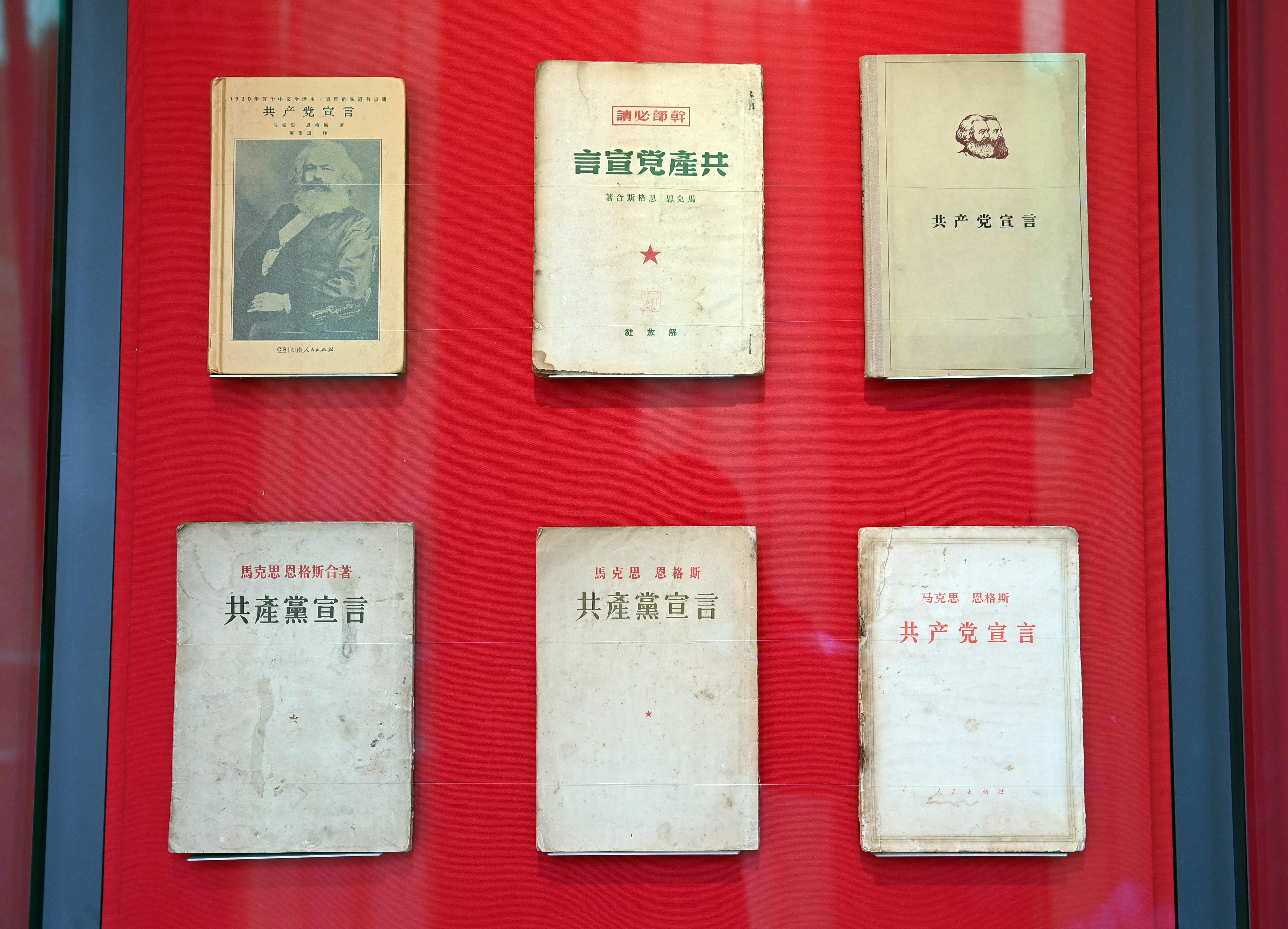 中國國家版本館中央總館展示的不同版本的《共產(chǎn)黨宣言》。