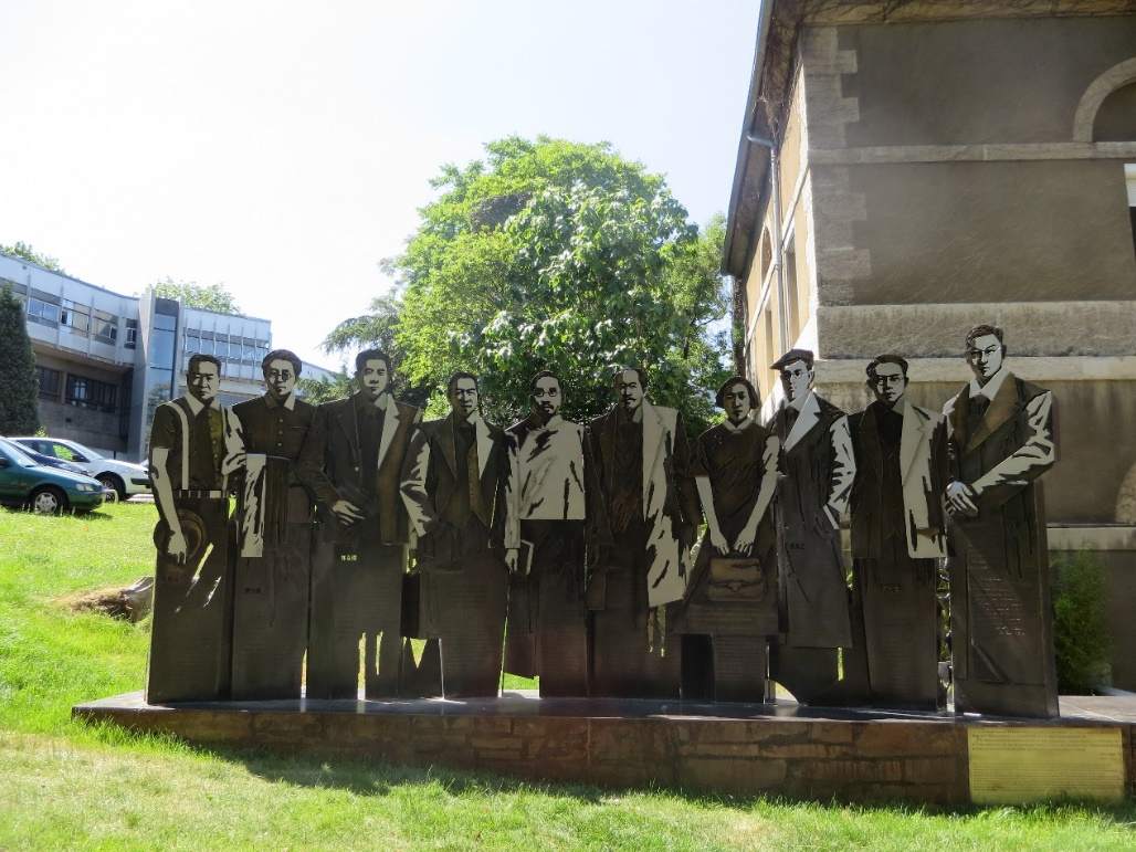 在里昂中法大學(xué)歷史博物館前方,屹立著廣州市政府贈送的雕像。蔡元培、常書鴻等10位與里昂中法大學(xué)關(guān)系密切的中國學(xué)者眺望前方,注視著來來往往的留學(xué)生。