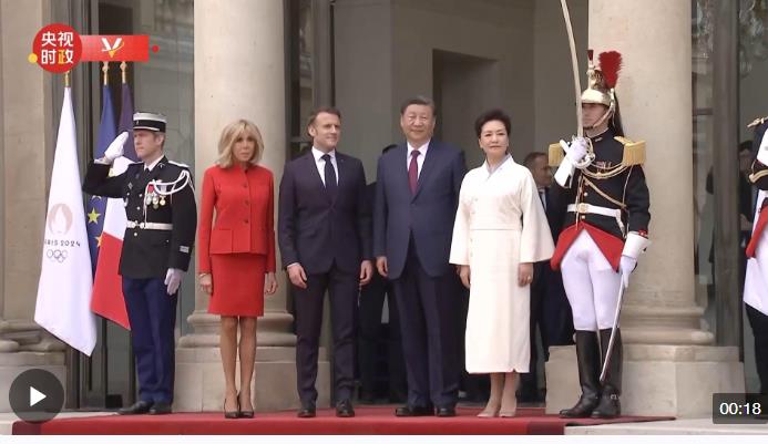 當(dāng)?shù)貢r(shí)間5月6日下午,國家主席習(xí)近平和夫人彭麗媛乘車抵達(dá)愛麗舍宮。
