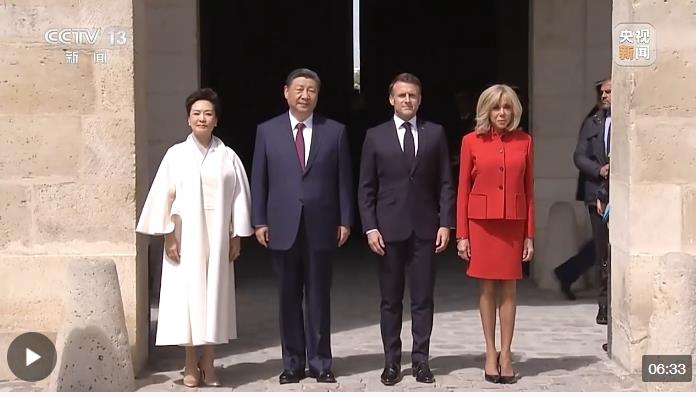 下午,馬克龍總統(tǒng)在榮軍院為習(xí)主席舉行隆重盛大的歡迎儀式。始建于1670年的榮軍院,是法國重要的歷史建筑,也是該國的文化地標(biāo)。10年前習(xí)主席首次訪法時(shí),歡迎儀式也是在榮軍院廣場舉行。5年前習(xí)主席訪法時(shí),馬克龍總統(tǒng)在著名的凱旋門舉行了歡迎儀式。