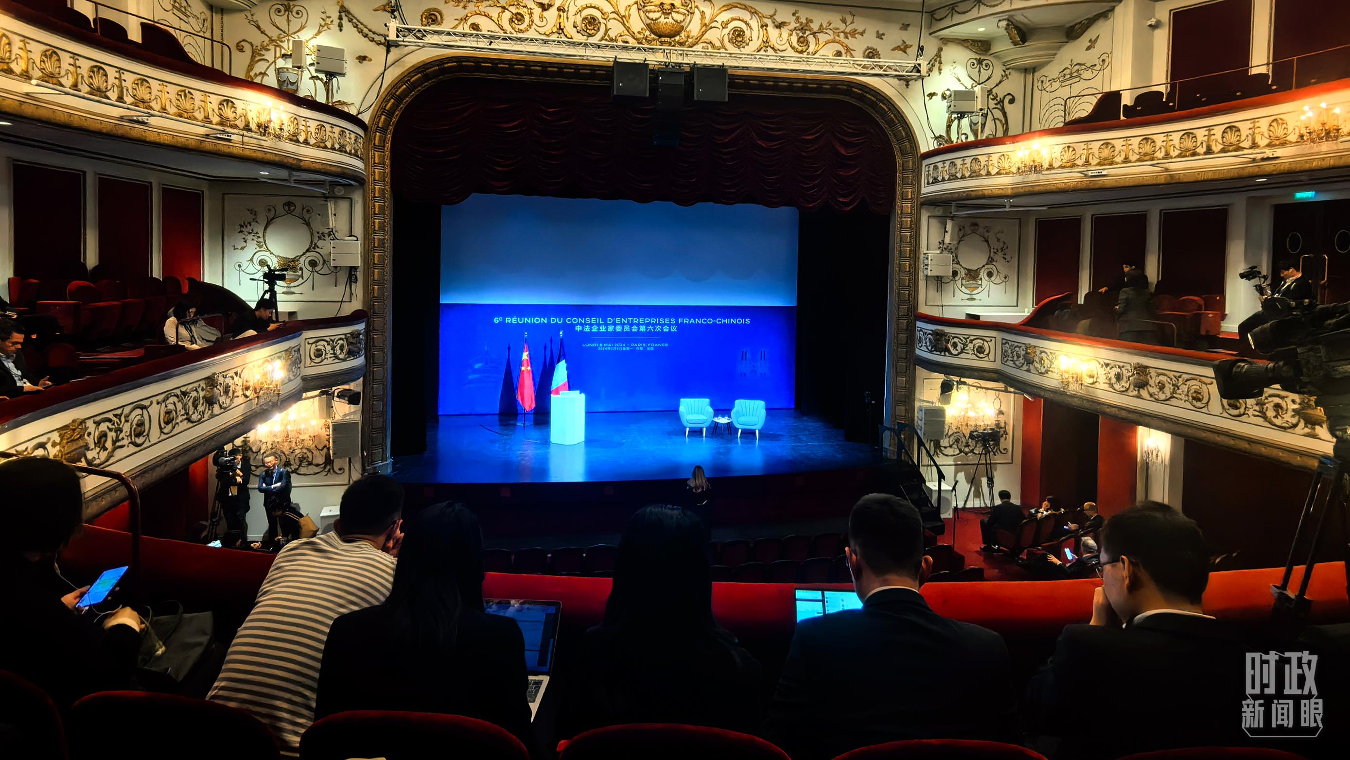 中法企業(yè)家委員會(huì)第六次會(huì)議閉幕式在馬里尼劇院舉行,這是開始前的現(xiàn)場。(總臺央視記者史偉拍攝)