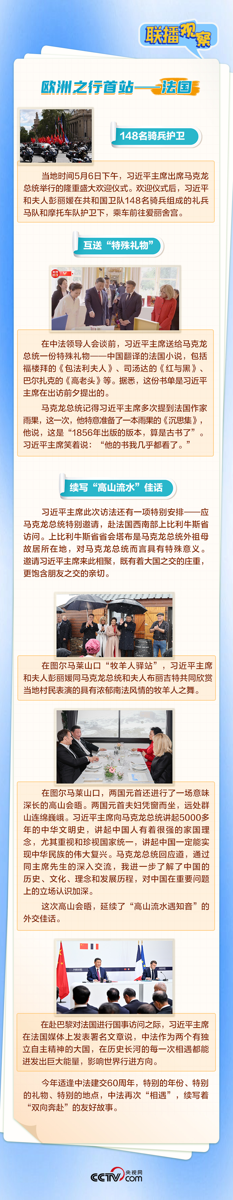 聯(lián)播+5月5日至10日,習近平主席對法國、塞爾維亞、匈牙利進行國事訪問,這是習近平主席今年首次出訪,也是中國國家元首時隔5年再訪歐洲。