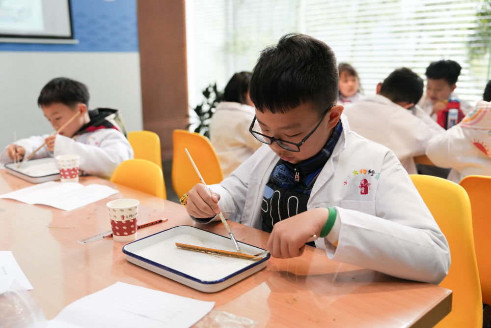 2024年3月16日,孩子們?cè)陂L(zhǎng)沙簡(jiǎn)牘博物館參與社會(huì)教育活動(dòng)“探秘簡(jiǎn)牘的清洗與保護(hù)”。湖南是簡(jiǎn)牘出土大省,長(zhǎng)沙簡(jiǎn)牘博物館推出了系列展陳、社會(huì)教育活動(dòng)等,讓觀眾能走近這跨越千年的“百科全書(shū)”。