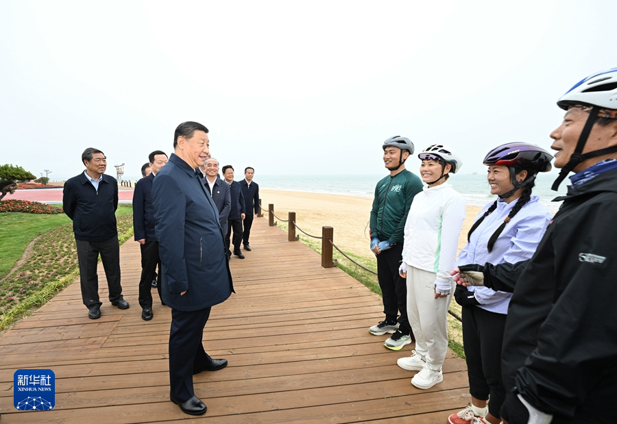 5月22日至24日,中共中央總書記、國(guó)家主席、中央軍委主席習(xí)近平在山東考察。這是22日下午,習(xí)近平在日照市陽(yáng)光海岸綠道同市民和游客親切交流。新華社記者 謝環(huán)馳 攝