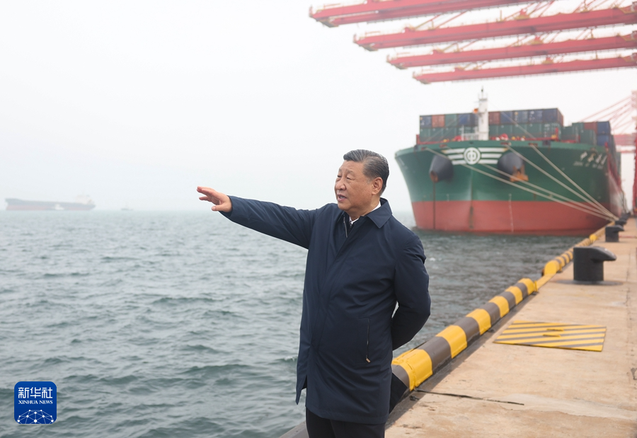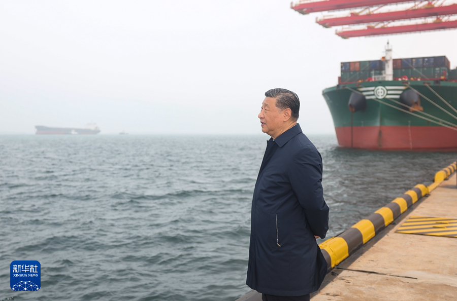 5月22日至24日,中共中央總書記、國(guó)家主席、中央軍委主席習(xí)近平在山東考察。這是22日下午,習(xí)近平在日照港考察。新華社記者 鞠鵬 攝