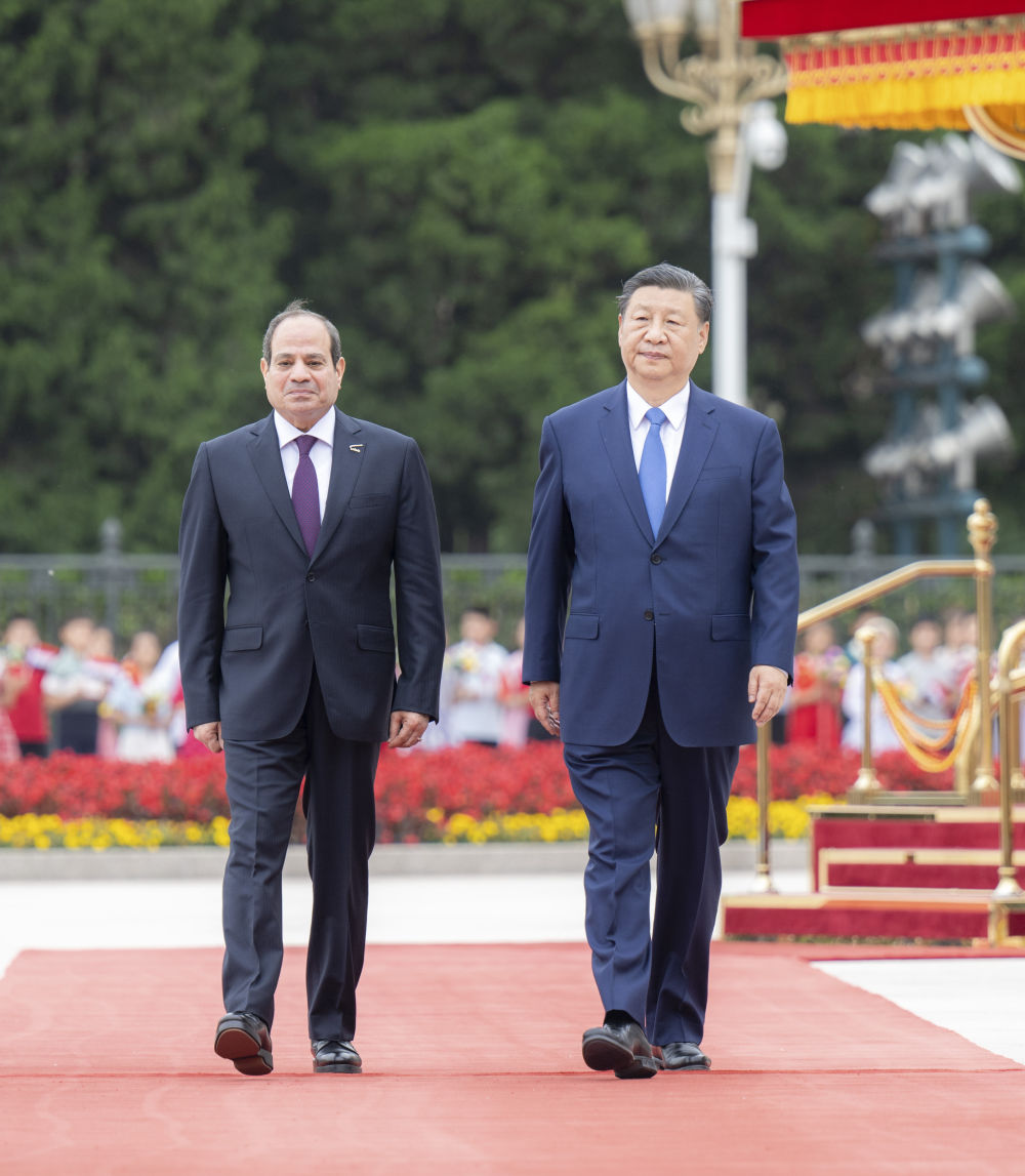 5月29日下午,國家主席習(xí)近平在北京人民大會堂同來華出席中國-阿拉伯國家合作論壇第十屆部長級會議開幕式并進(jìn)行國事訪問的埃及總統(tǒng)塞西舉行會談。這是會談前,習(xí)近平在人民大會堂東門外廣場為塞西舉行歡迎儀式。新華社記者 翟健嵐 攝