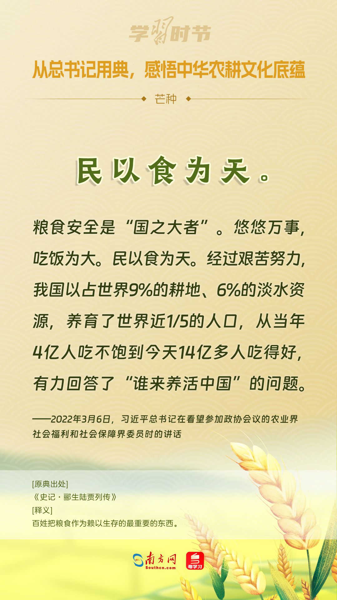 6月5日迎來芒種節(jié)氣,讓我們一起重溫習近平總書記引用過的關于農(nóng)耕的經(jīng)典名句,共同領略中華優(yōu)秀傳統(tǒng)文化的風采與魅力。