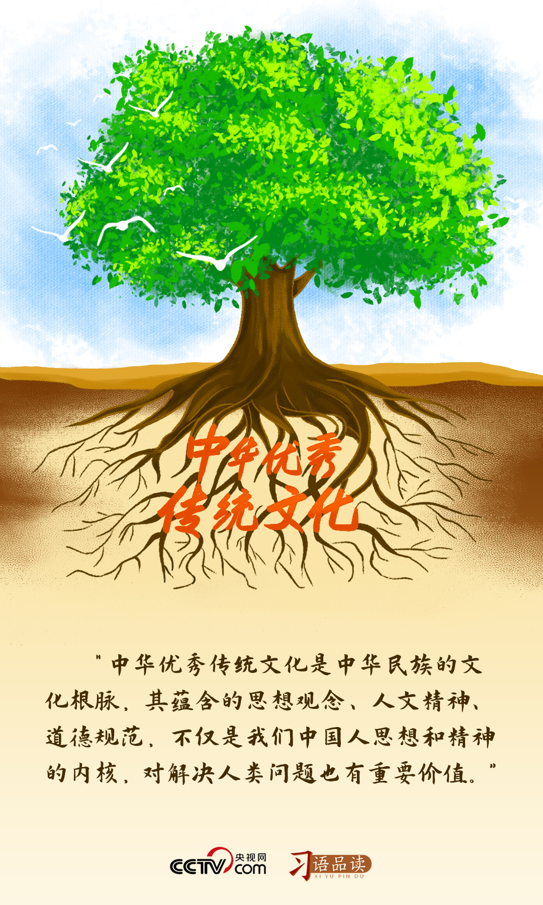 “根”屬于植物學名詞,具有吸收、儲存、輸送營養(yǎng)并固著自身的功能。強大的根脈可以促進植物不斷茁壯成長。總書記將中華優(yōu)秀傳統(tǒng)文化比作中華民族的文化根脈,既強調了繼承和弘揚中華優(yōu)秀傳統(tǒng)文化的重要性,也彰顯中華文明具有連續(xù)性、統(tǒng)一性與創(chuàng)新性等突出特性。