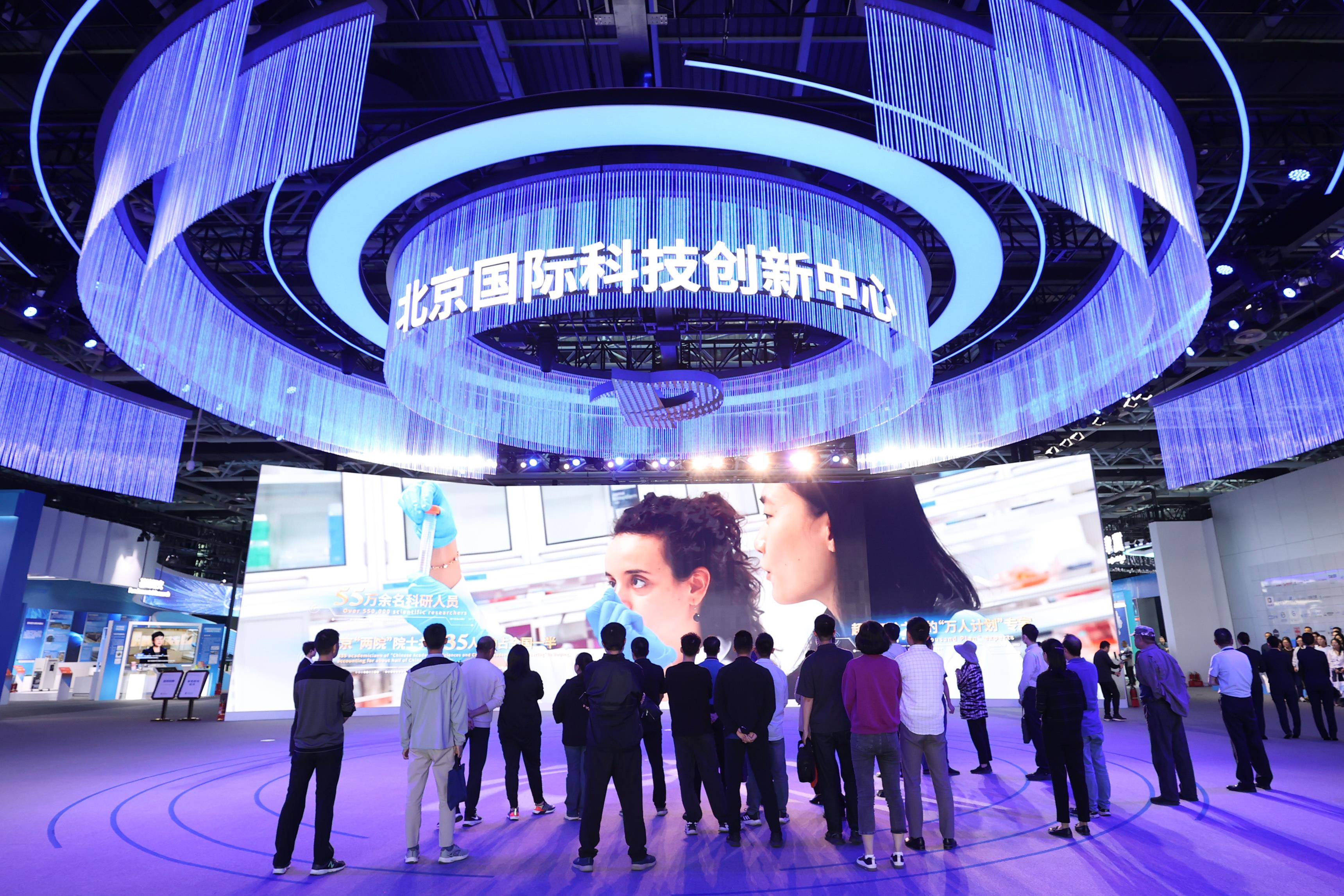 2024年5月11日,觀眾在中關村展示中心觀看科技創(chuàng)新宣傳片。