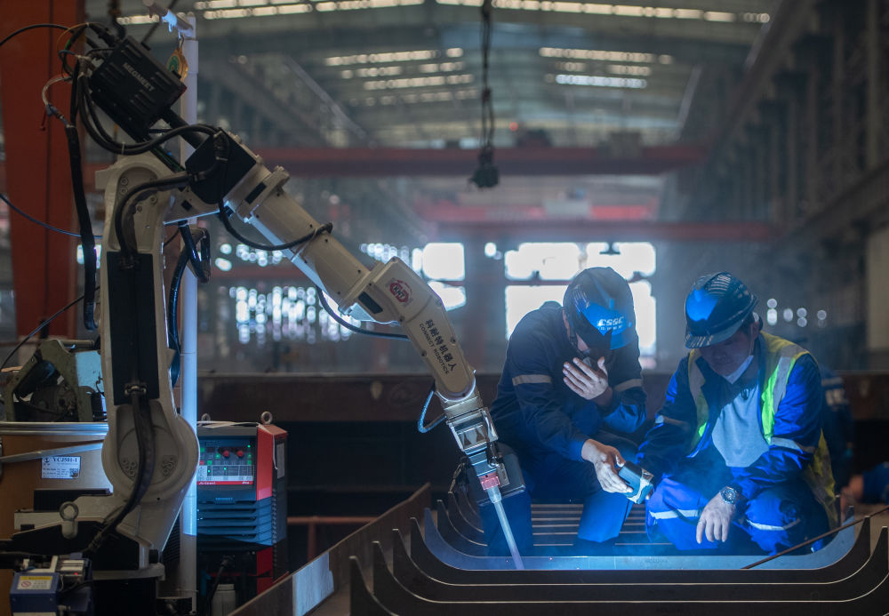 2024年5月16日,工作人員在湖北省武漢市新洲區(qū)武昌船舶重工集團(tuán)有限公司查看焊接機器人焊接的焊縫。近年來,該公司圍繞新型公務(wù)船、高端海工船、中小型綠色智能油化船和支線集裝箱船等主建船型,積極推進(jìn)數(shù)字化轉(zhuǎn)型與智能制造,助力航運高質(zhì)量發(fā)展。
