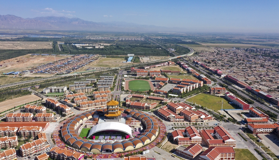 這是2022年9月7日拍攝的寧夏銀川市閩寧鎮(zhèn)(無人機(jī)照片)。新華社記者 馮開華 攝