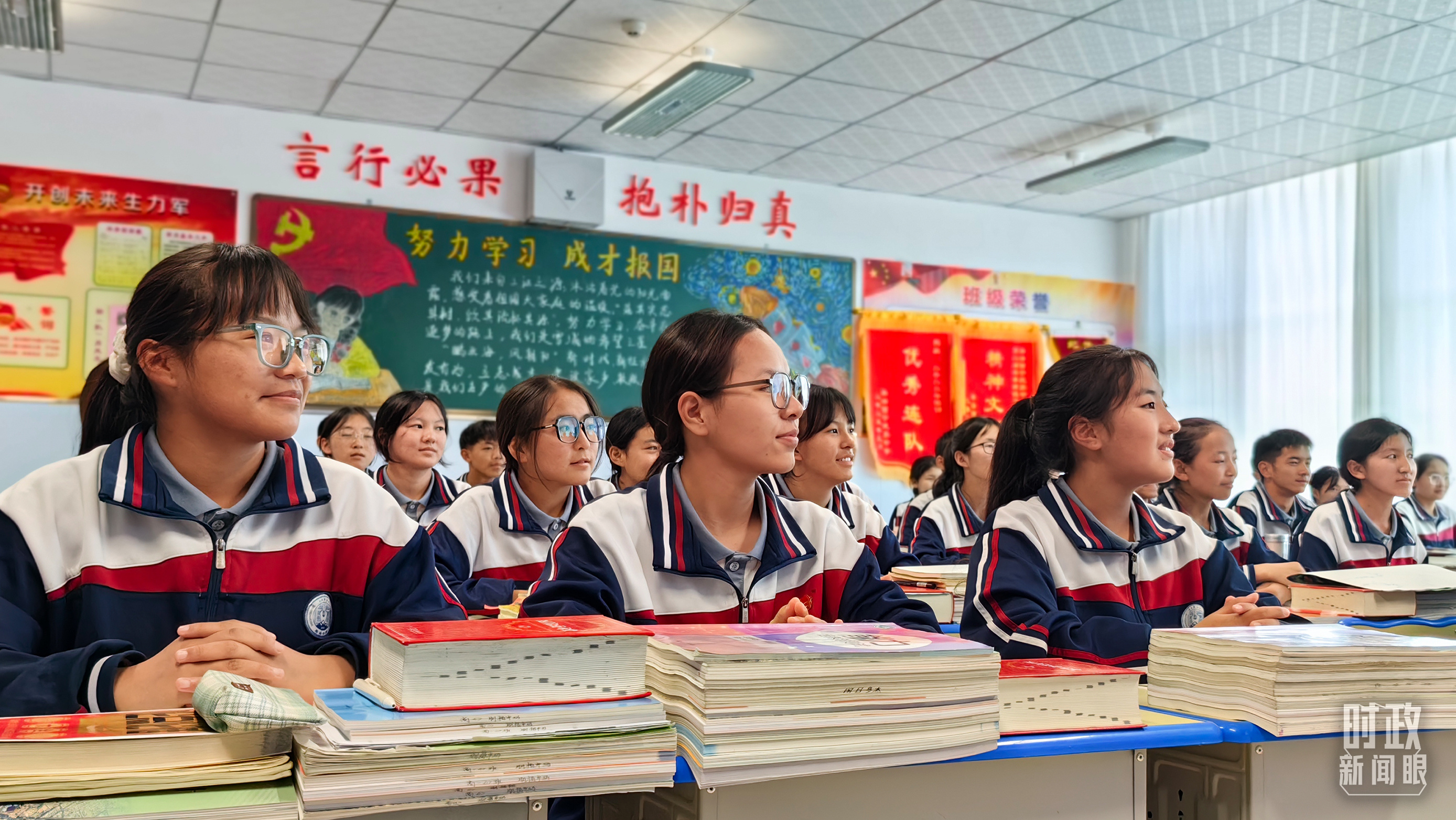 果洛西寧民族中學(xué)高一(1)班的“新時(shí)代、新家鄉(xiāng)”主題思政課。(總臺(tái)央視記者段德文拍攝)