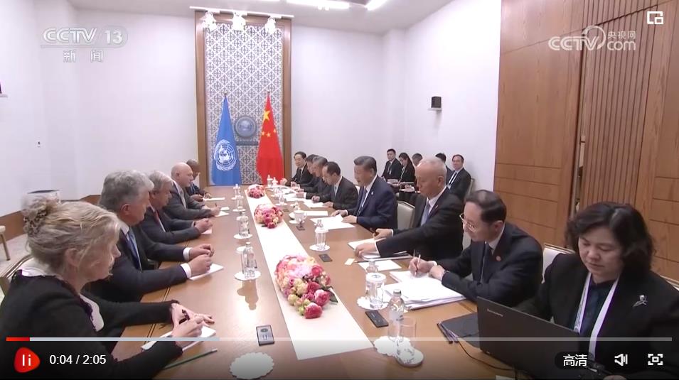 當?shù)貢r間7月4日下午,國家主席習近平在阿斯塔納出席上海合作組織峰會期間會見聯(lián)合國秘書長古特雷斯。
