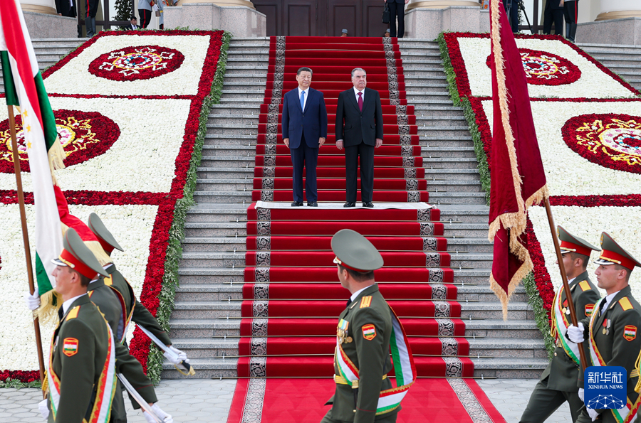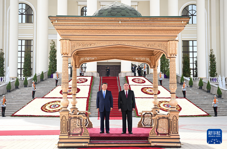 當地時間7月5日下午,國家主席習近平同塔吉克斯坦總統(tǒng)拉赫蒙在杜尚別總統(tǒng)府舉行會談。拉赫蒙為習近平舉行盛大隆重的歡迎儀式。