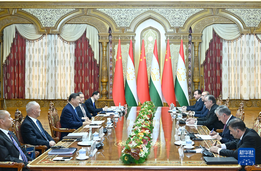 當地時間7月5日下午,國家主席習近平同塔吉克斯坦總統(tǒng)拉赫蒙在杜尚別總統(tǒng)府舉行會談。這是兩國元首舉行大范圍會談。