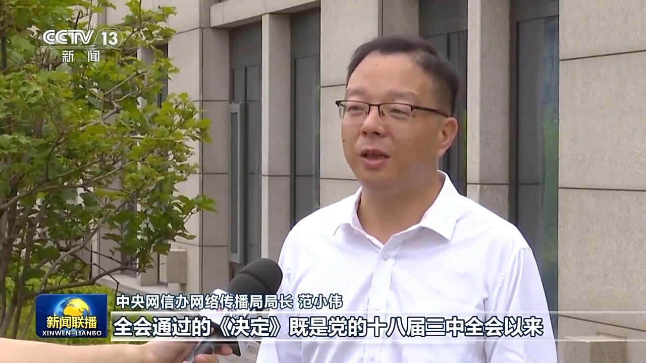 中央網(wǎng)信辦網(wǎng)絡(luò)傳播局局長(zhǎng) 范小偉:全會(huì)通過的《決定》,既是黨的十八屆三中全會(huì)以來(lái)全面深化改革的實(shí)踐續(xù)篇,也是新時(shí)代新征程推進(jìn)中國(guó)式現(xiàn)代化的時(shí)代新篇。我們將深入學(xué)習(xí)貫徹全會(huì)精神,進(jìn)一步增強(qiáng)堅(jiān)定擁護(hù)“兩個(gè)確立”、堅(jiān)決做到“兩個(gè)維護(hù)”的政治自覺,適應(yīng)信息技術(shù)發(fā)展新形勢(shì),不斷健全網(wǎng)絡(luò)綜合治理體系,進(jìn)一步加強(qiáng)網(wǎng)絡(luò)文明建設(shè),更好服務(wù)黨和國(guó)家工作大局。