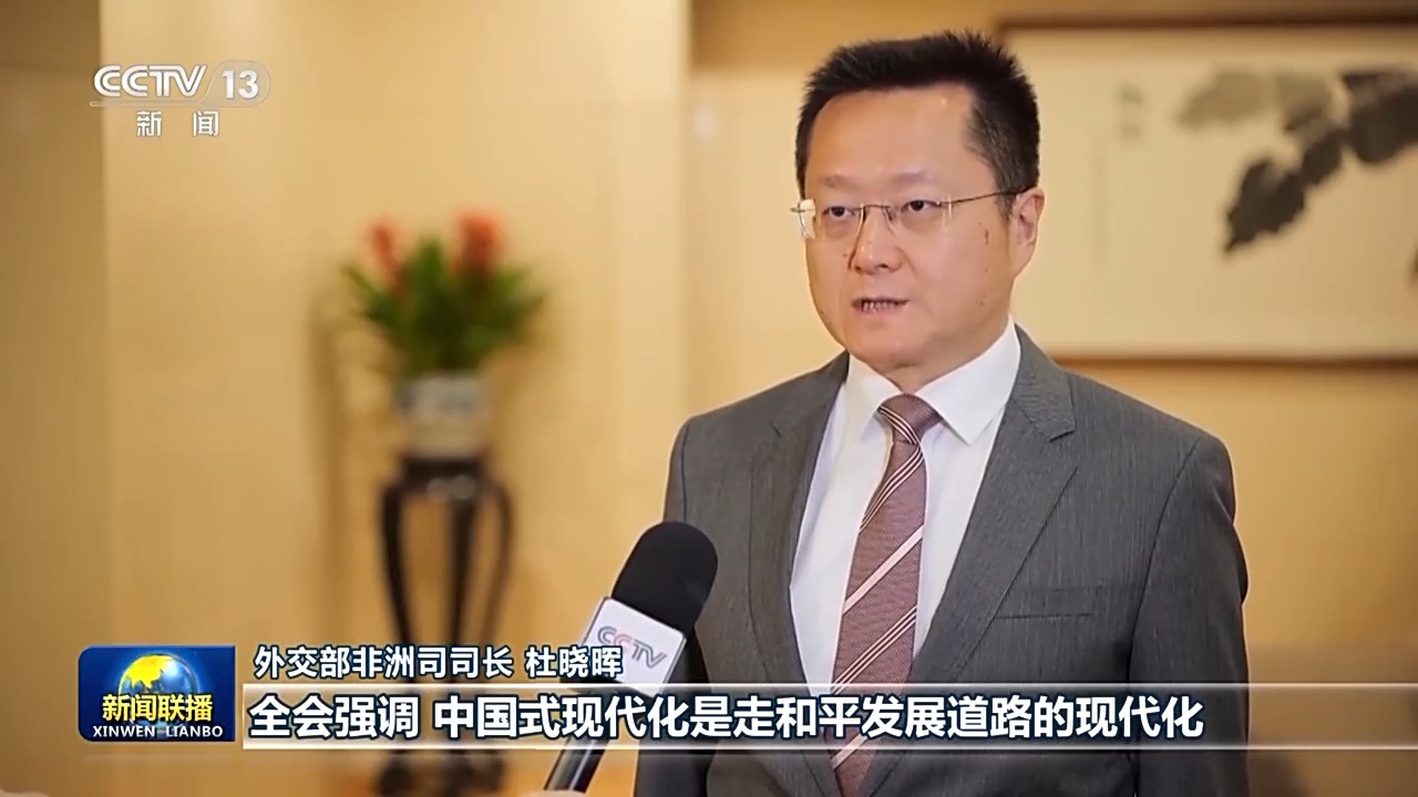 外交部非洲司司長(zhǎng) 杜曉暉:全會(huì)強(qiáng)調(diào),中國(guó)式現(xiàn)代化是走和平發(fā)展道路的現(xiàn)代化,開放是中國(guó)式現(xiàn)代化的鮮明標(biāo)識(shí)。在百年變局加速演進(jìn)、世界進(jìn)入新的動(dòng)蕩變革期的大背景下,三中全會(huì)給世界注入和平力量、穩(wěn)定力量、進(jìn)步力量、發(fā)展力量。我們將以習(xí)近平外交思想為指引,堅(jiān)定奉行獨(dú)立自主的和平外交政策,推動(dòng)構(gòu)建人類命運(yùn)共同體,為以中國(guó)式現(xiàn)代化全面推進(jìn)強(qiáng)國(guó)建設(shè)、民族復(fù)興偉業(yè)營(yíng)造更有利國(guó)際環(huán)境、提供更堅(jiān)實(shí)戰(zhàn)略支撐。