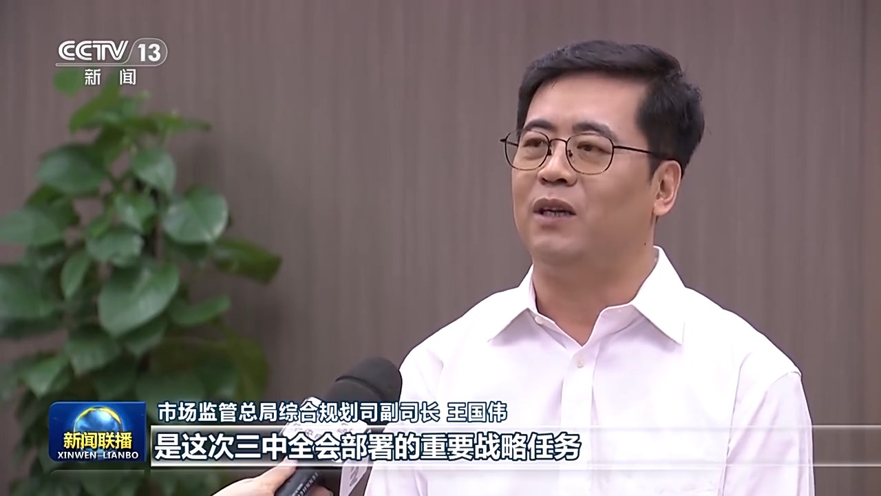市場(chǎng)監(jiān)管總局綜合規(guī)劃司副司長(zhǎng) 王國(guó)偉:構(gòu)建全國(guó)統(tǒng)一大市場(chǎng)是這次三中全會(huì)部署的重要戰(zhàn)略任務(wù),這不僅對(duì)構(gòu)建高水平社會(huì)主義市場(chǎng)經(jīng)濟(jì)體制意義十分深遠(yuǎn),也為孕育新質(zhì)生產(chǎn)力、培育發(fā)展新動(dòng)能新優(yōu)勢(shì)鍛造底板、厚植土壤。市場(chǎng)監(jiān)管部門要加快完善市場(chǎng)經(jīng)濟(jì)基礎(chǔ)制度,不斷提高綜合監(jiān)管和服務(wù)能力,更好保證各種所有制經(jīng)濟(jì)平等使用生產(chǎn)要素、公平參與市場(chǎng)競(jìng)爭(zhēng)、同等受到法律保護(hù),為各類經(jīng)營(yíng)主體提供更具活力、更有秩序的市場(chǎng)環(huán)境。