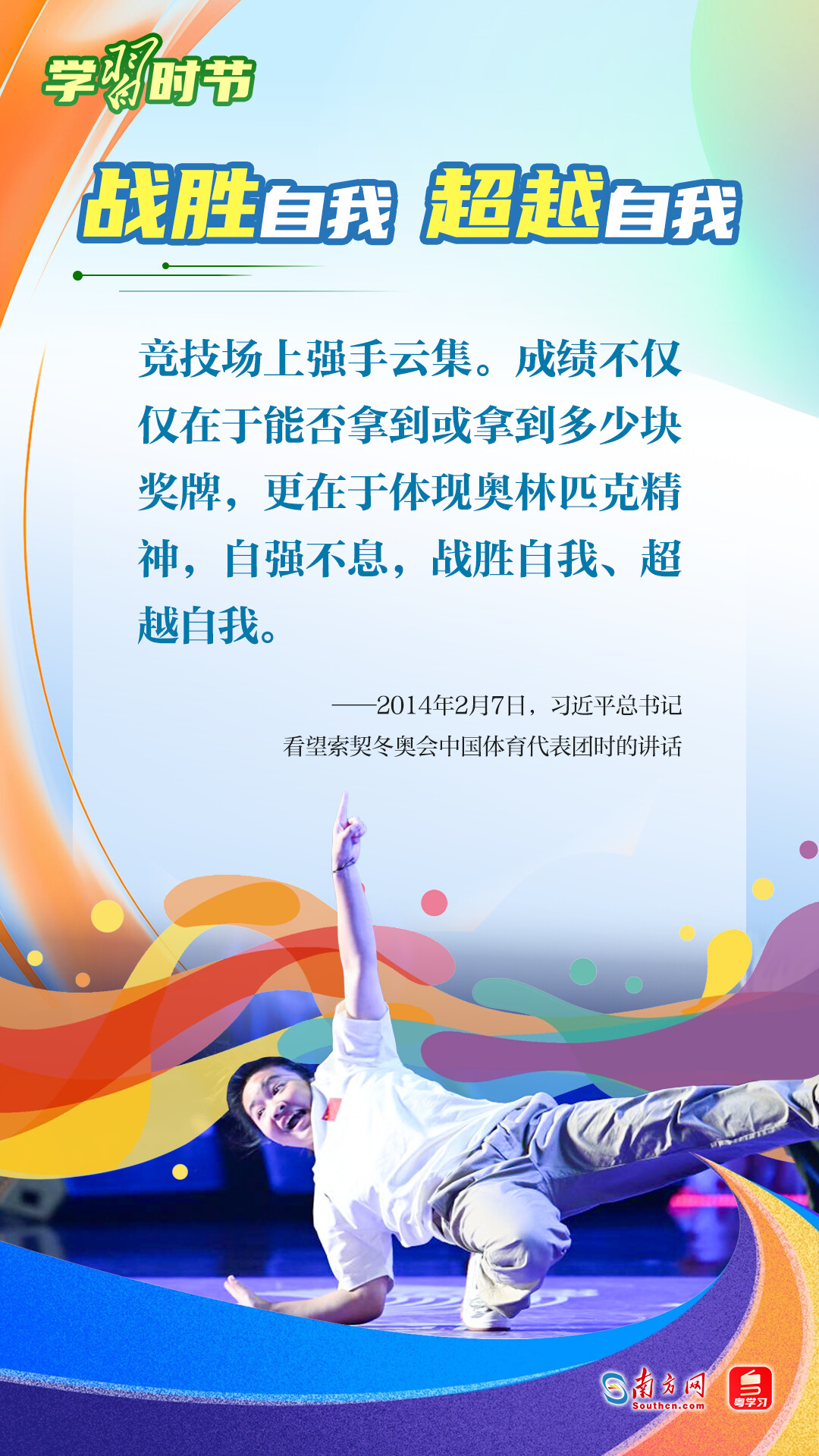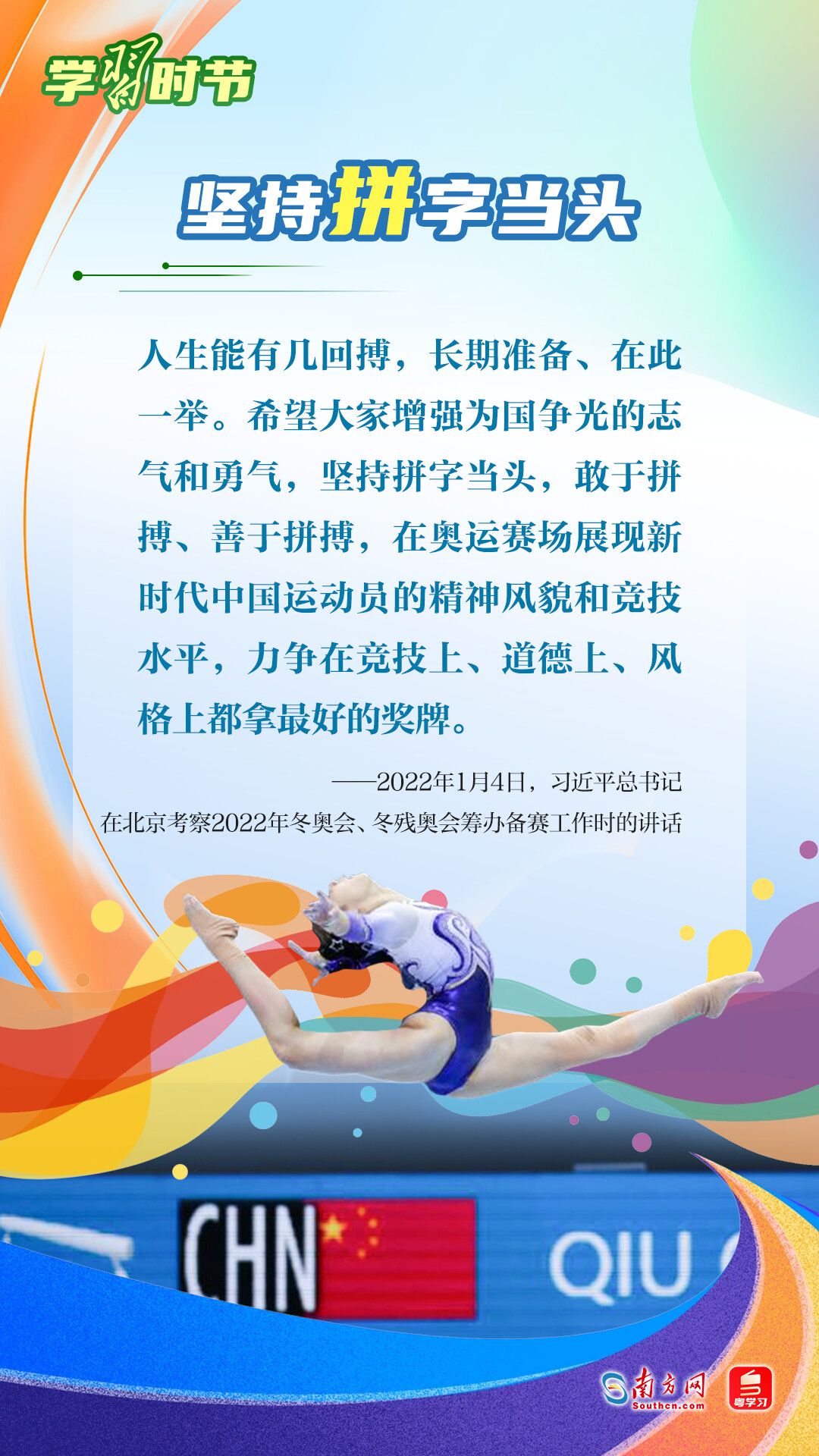 “我們不以勝負(fù)論英雄,同時(shí)英雄就要敢于爭(zhēng)先、敢于爭(zhēng)第一?!绷?xí)近平總書(shū)記曾在不同場(chǎng)合論述奧林匹克精神,深刻闡明了勝與負(fù)、成與敗的辯證關(guān)系,對(duì)奧林匹克“更快、更高、更強(qiáng)——更團(tuán)結(jié)”的格言進(jìn)行詮釋。讓我們一同學(xué)習(xí)習(xí)近平總書(shū)記對(duì)奧林匹克精神的重要論述,心懷夢(mèng)想、奮勇拼搏,攜手走向美好明天。