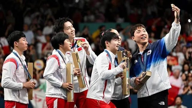 巴黎奧運(yùn)會(huì)乒乓球混合雙打頒獎(jiǎng)儀式結(jié)束后,中朝韓運(yùn)動(dòng)員聚到一起合影的場(chǎng)景,在朋友圈刷了屏。