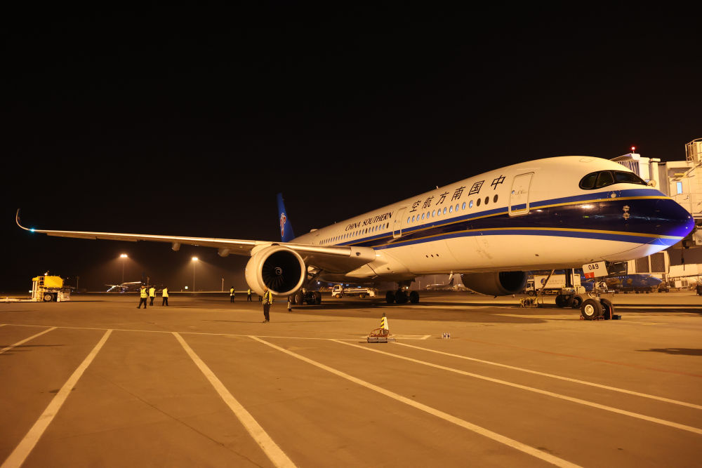 2024年4月24日晚,南航沈陽-法蘭克福CZ8021首航航班在沈陽桃仙國際機場準備起飛。這是國內(nèi)航司在東北地區(qū)開通的首條直飛德國定期航線。