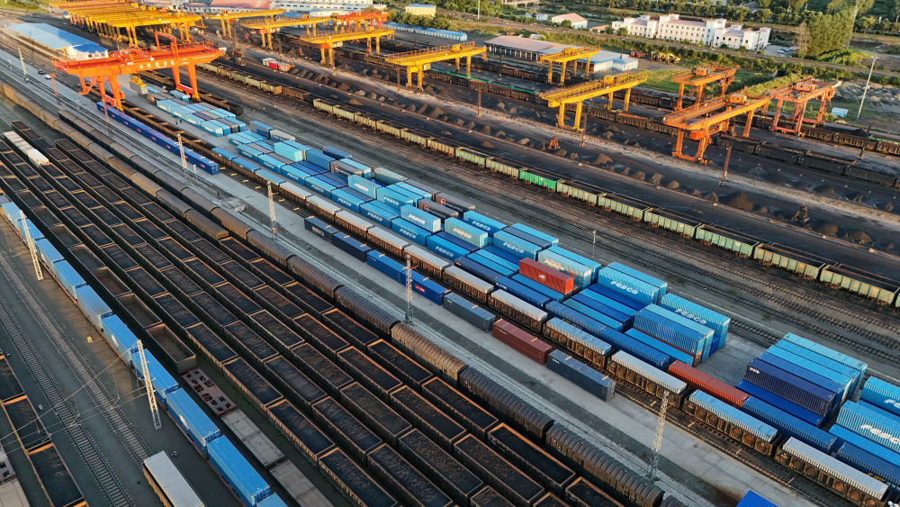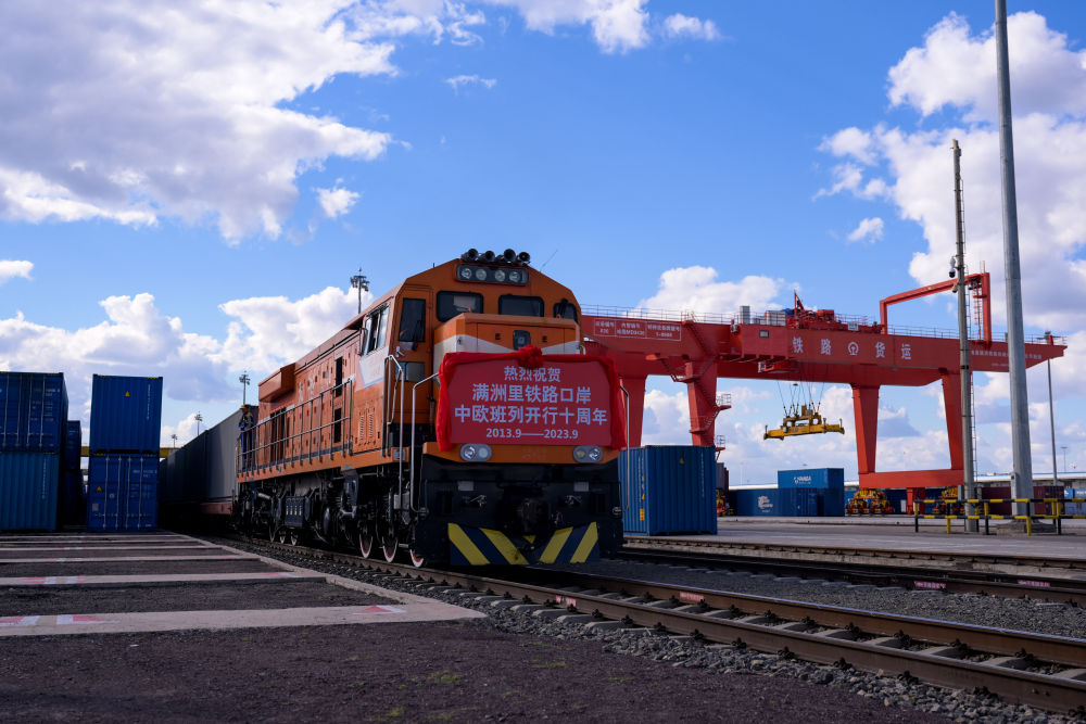 2023年9月20日,一列中歐班列行駛在內(nèi)蒙古滿洲里站貨運車間集裝箱場。作為我國向北開放的“橋頭堡”、中歐班列“東通道”的重要口岸,滿洲里鐵路口岸不斷加大中歐班列通道能力建設,進一步提升運輸效率和品質(zhì)。