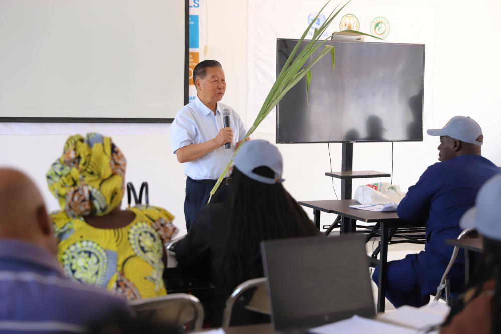 8月4日,在盧旺達(dá)南方省胡耶區(qū),林占熺為非洲地區(qū)菌草技術(shù)培訓(xùn)班授課。新華社發(fā)(黃萬晴攝)
