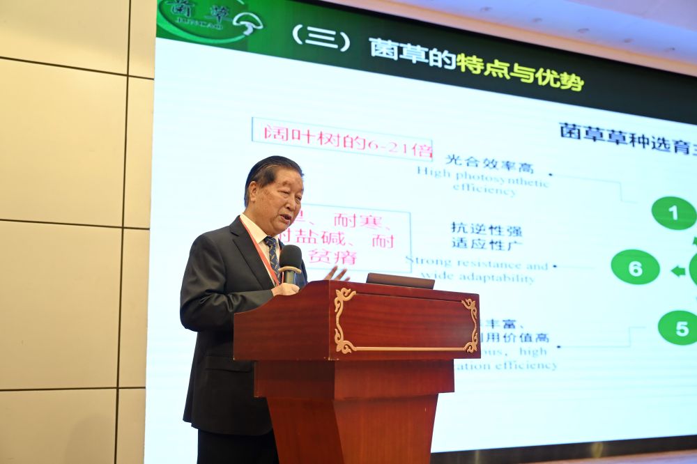 6月16日,第十九屆國際菌草產(chǎn)業(yè)發(fā)展研討會在福建福州舉行,國家菌草工程技術(shù)研究中心首席科學(xué)家林占熺發(fā)表《菌草技術(shù)助力落實聯(lián)合國可持續(xù)發(fā)展目標(biāo)的潛力》主旨報告。新華社記者 林善傳 攝