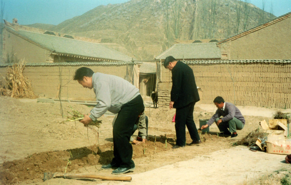 1997年4月,林占熺(左一)帶領(lǐng)科研團隊首次在寧夏彭陽縣試種菌草。新華社發(fā)