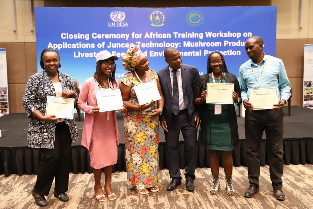 8月初,在非洲地區(qū)菌草技術(shù)培訓(xùn)班舉辦期間,聯(lián)合國官員和使團代表團專程赴盧旺達(dá)考察菌草技術(shù)和產(chǎn)業(yè)在非洲地區(qū)的發(fā)展?!拔液芨吲d同其他聯(lián)合國官員一起,親眼見證菌草技術(shù)以實際行動造福民眾。”聯(lián)合國秘書長辦公室主任考特尼·拉特雷說,菌草技術(shù)具有“可負(fù)擔(dān)”的突出優(yōu)勢,“對非洲大陸所有發(fā)展中國家很有價值、非常適用”。
