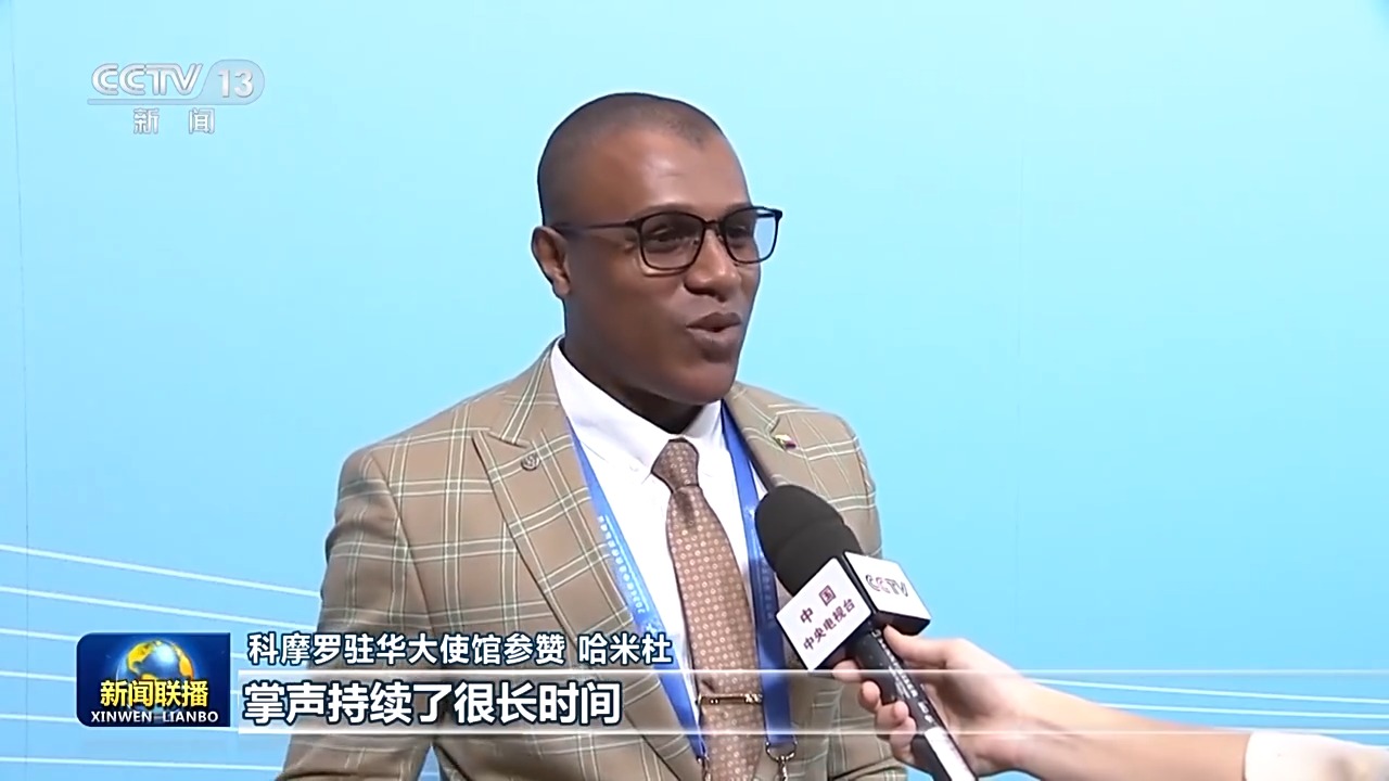 科摩羅駐華大使館參贊 哈米杜:每一個在現(xiàn)場聆聽講話的人都感到很振奮。大家都在鼓掌,掌聲持續(xù)了很長時間。中非關系整體定位提升至新時代全天候中非命運共同體,它將為非洲的發(fā)展帶來更多機遇,將促進中非雙方以及非洲國家之間的交流合作。