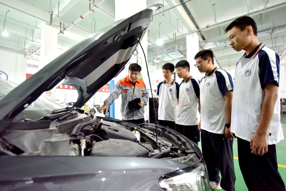 2024年6月7日,河北省邢臺市威縣職業(yè)技術教育中心教師在指導學生學習汽車維修技術。新華社記者 王曉 攝