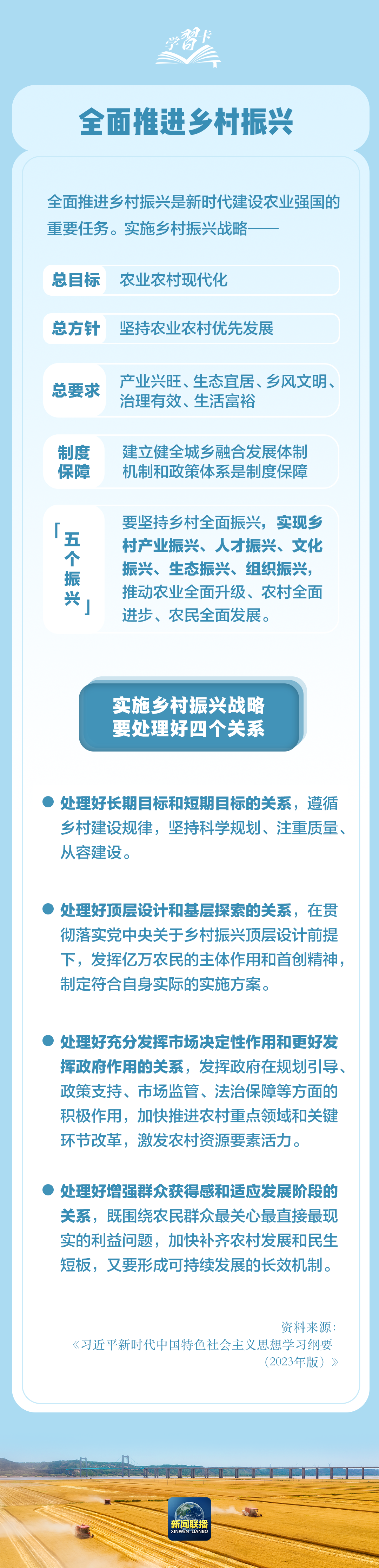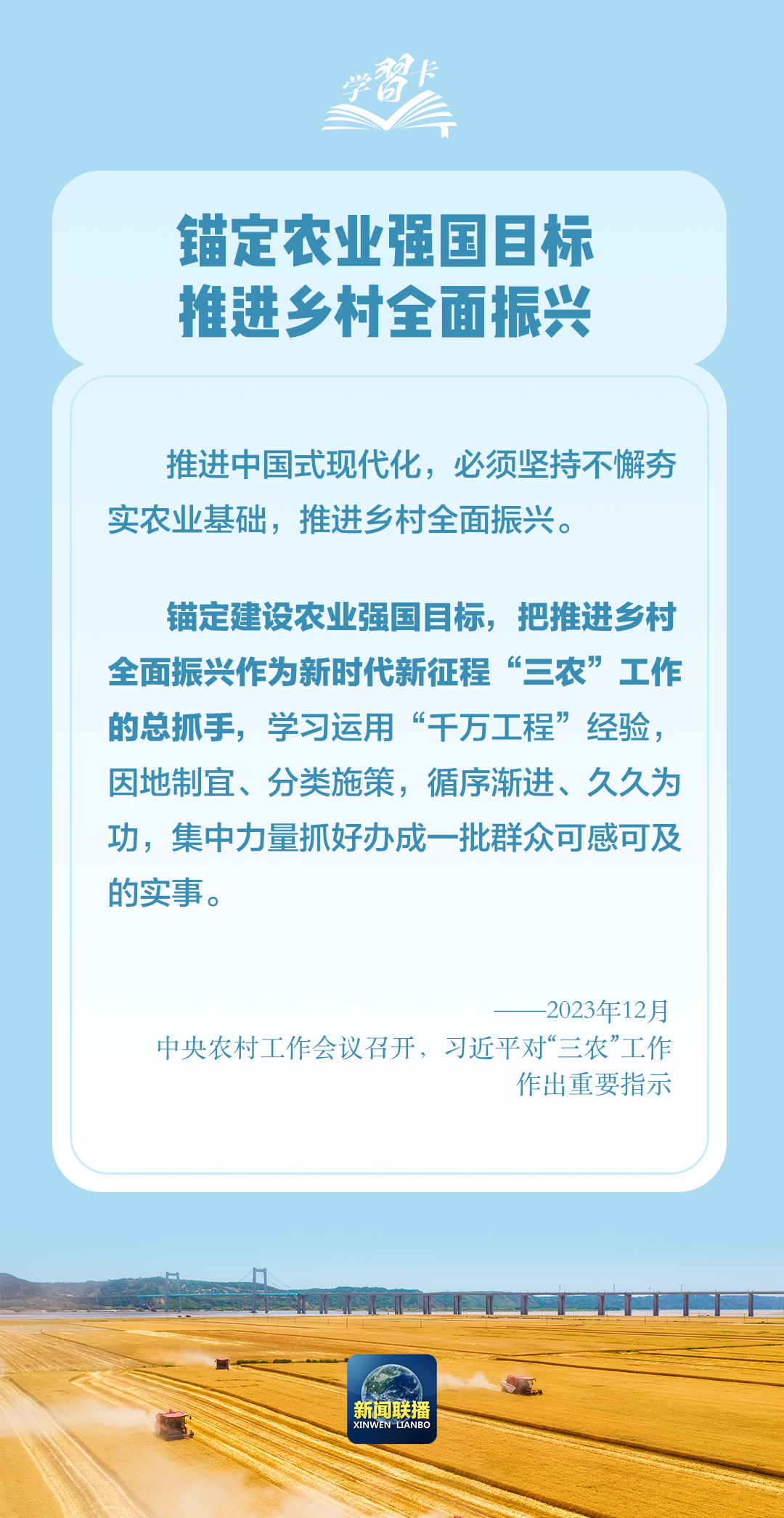 農(nóng)業(yè)農(nóng)村農(nóng)民問題是關(guān)系國計民生的根本性問題,農(nóng)業(yè)強國是社會主義現(xiàn)代化強國的根基。習近平總書記強調(diào),實現(xiàn)高質(zhì)量發(fā)展,也離不開農(nóng)業(yè)發(fā)展。拓展現(xiàn)代化發(fā)展空間,農(nóng)業(yè)農(nóng)村是大有可為的廣闊天地。