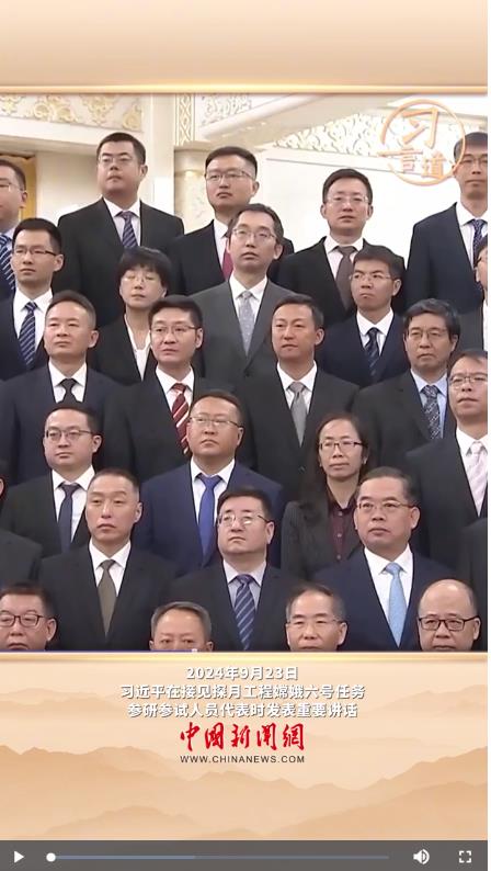 中共中央總書記、國家主席、中央軍委主席習近平在人民大會堂接見探月工程嫦娥六號任務(wù)參研參試人員代表時發(fā)表重要講話。習近平強調(diào),探索浩瀚宇宙,建設(shè)航天強國,是我們不懈追求的航天夢。