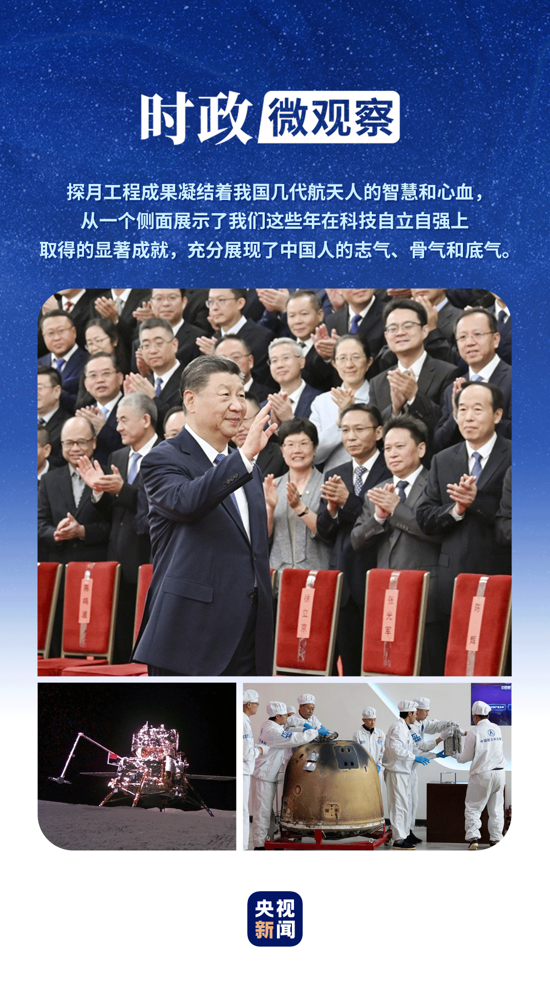 探月工程一路走來,從孫家棟、欒恩杰、歐陽自遠等科技大家,到胡浩、李東、張玉花等航天骨干,一代代航天人攻堅克難、勇攀高峰,共同托舉探月夢、航天夢。以地球搖籃為起點,中國航天人堅持自力更生、自主創(chuàng)新,推動航天事業(yè)從無到有、從弱到強、從“藍圖繪夢”到“奮斗圓夢”,實現(xiàn)歷史性、高質量、跨越式發(fā)展,航天強國建設邁出堅實步伐。