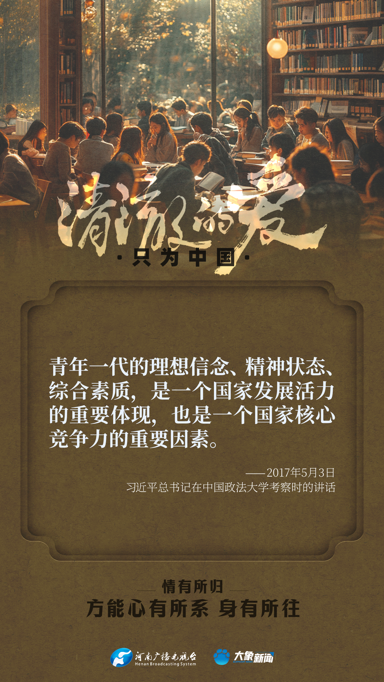 習(xí)近平總書(shū)記對(duì)廣大青年寄予厚望。黨的十八大以來(lái),他多次來(lái)到青年中間,同大家談人生、話(huà)理想,鼓勵(lì)青年人心系祖國(guó),志存高遠(yuǎn),腳踏實(shí)地,在奮斗中創(chuàng)造精彩人生,為祖國(guó)和人民貢獻(xiàn)青春和力量。