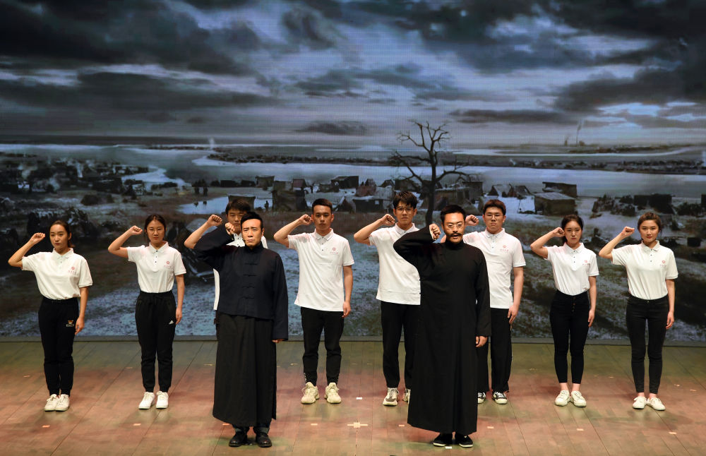 電視劇《覺(jué)醒年代》主創(chuàng)團(tuán)隊(duì)走進(jìn)北京大學(xué),劇中主要演員與北大學(xué)生同臺(tái)演出(2021年4月20日攝)。