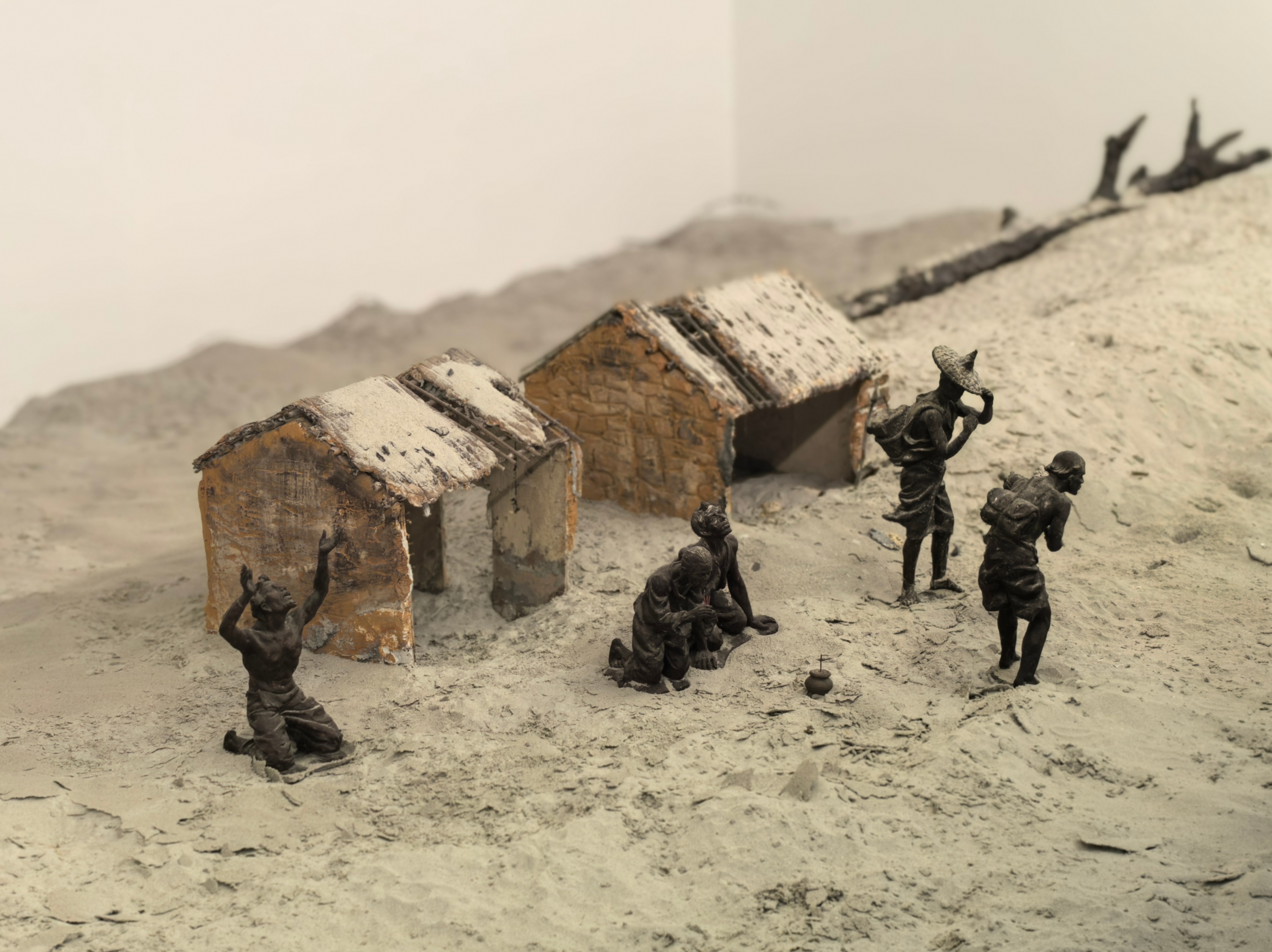 谷文昌紀(jì)念館里展示的當(dāng)年東山人民飽受風(fēng)沙災(zāi)害之苦的情景。(總臺(tái)央廣記者潘毅拍攝)