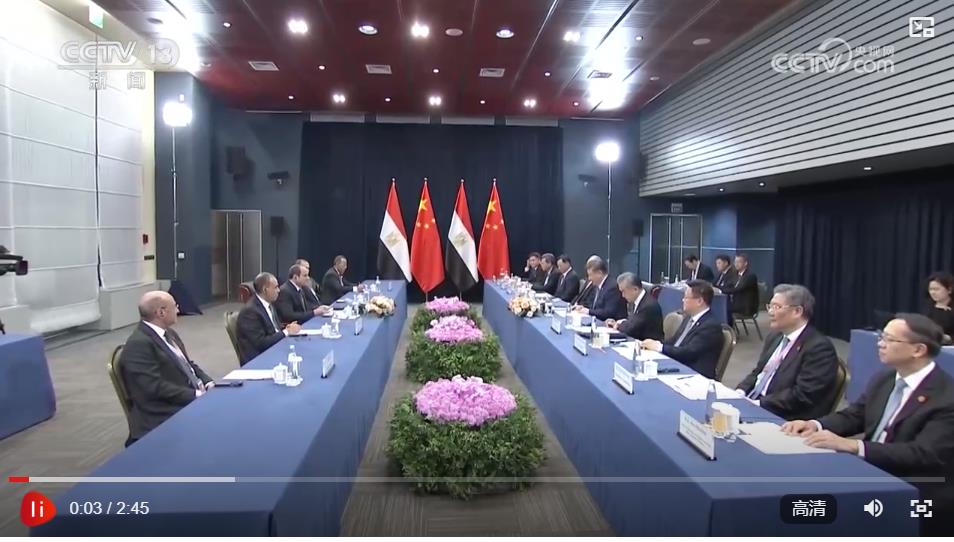 習(xí)近平祝賀并歡迎埃及首次作為正式成員參加金磚國家領(lǐng)導(dǎo)人會晤。習(xí)近平指出,今年是“中?;锇槟辍焙蛢蓢⑷鎽?zhàn)略伙伴關(guān)系10周年。中方堅定支持埃及維護國家主權(quán)、安全、發(fā)展利益,愿同埃方做守望相助的真誠朋友、攜手發(fā)展的親密伙伴。雙方要繼續(xù)堅定相互支持,鞏固政治互信,深化務(wù)實合作,高質(zhì)量共建“一帶一路”,密切人文交流,推動雙邊關(guān)系朝著構(gòu)建面向新時代的中埃命運共同體目標(biāo)持續(xù)邁進。中方也愿同埃方加強協(xié)調(diào),推動“大金磚合作”行穩(wěn)致遠(yuǎn),進一步提升全球南方影響力和發(fā)言權(quán),維護發(fā)展中國家共同利益。