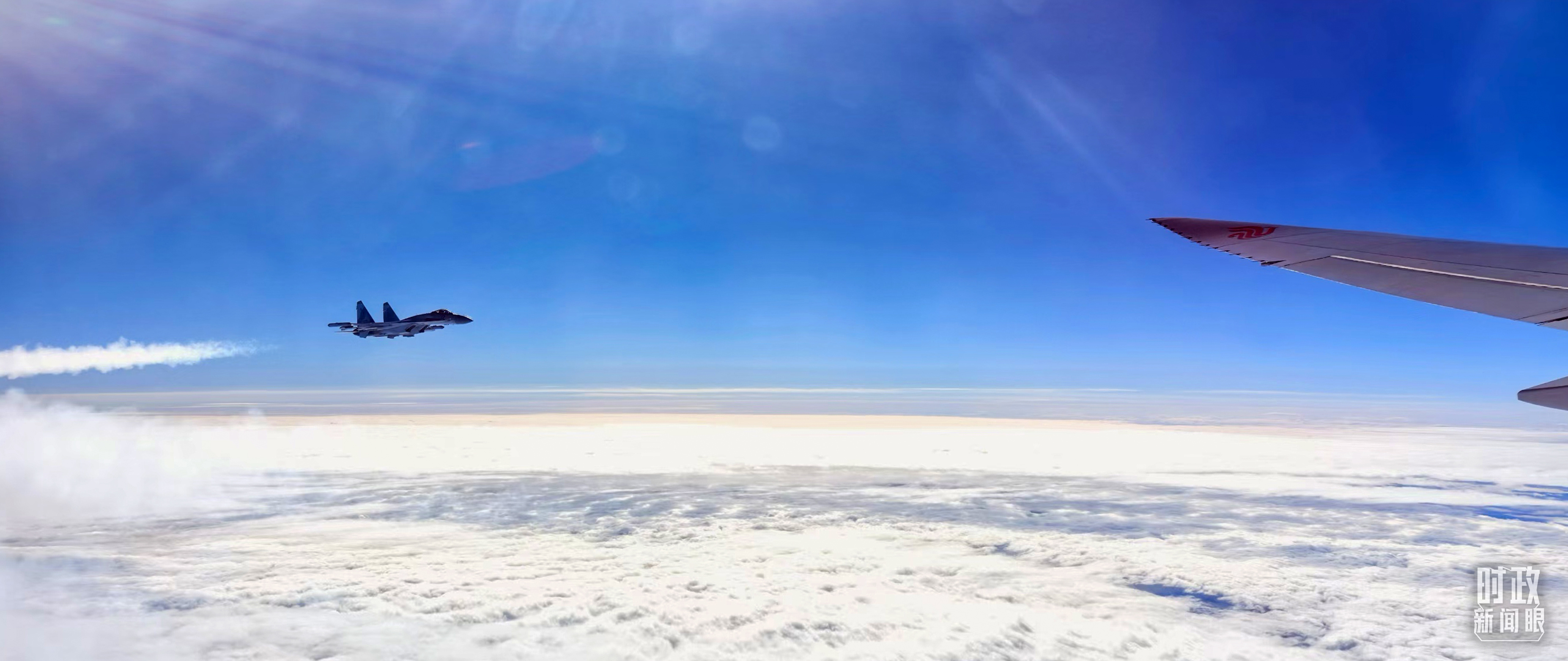 習主席乘坐的專機進入俄羅斯領(lǐng)空時,俄空軍戰(zhàn)機升空護航。(總臺央視記者李錚拍攝)