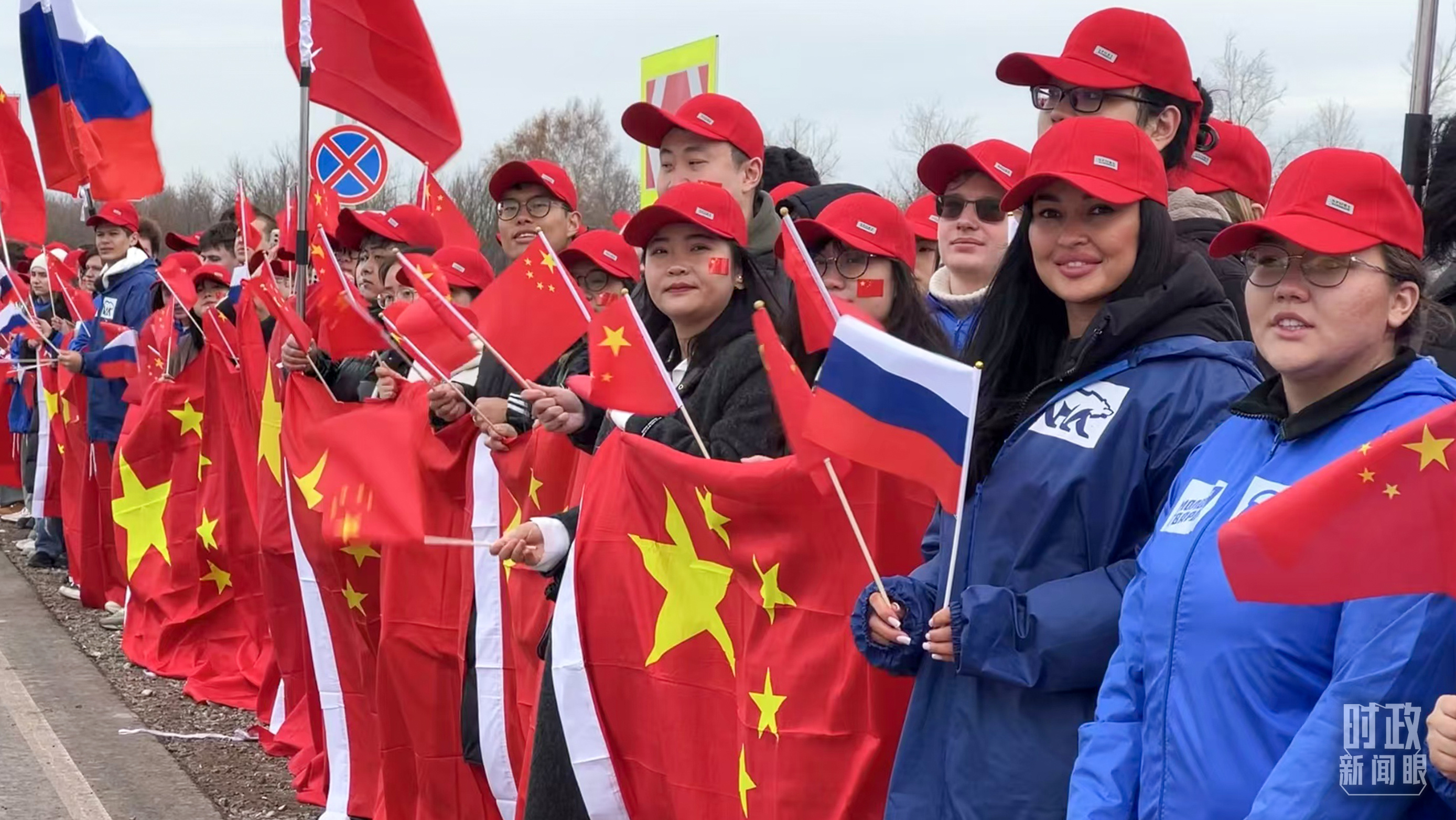 俄羅斯喀山各界人士揮舞中俄兩國國旗,歡迎習主席到訪。(總臺央視記者楊新禹拍攝)