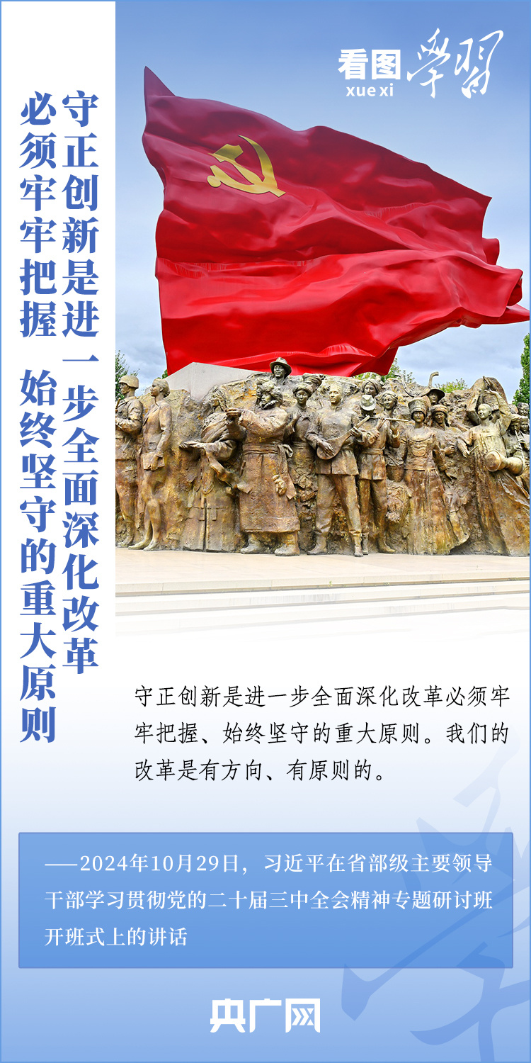 改革只有進行時,沒有完成時。10月29日,省部級主要領(lǐng)導(dǎo)干部學(xué)習貫徹黨的二十屆三中全會精神專題研討班在中央黨校(國家行政學(xué)院)開班。習近平總書記發(fā)表重要講話,就進一步全面深化改革的一系列重大問題進行深刻闡釋,強調(diào)要牢牢把握、始終堅守“守正創(chuàng)新”這一重大原則,把握好“四對關(guān)系”,奮力打開改革發(fā)展新天地。一起來學(xué)習!