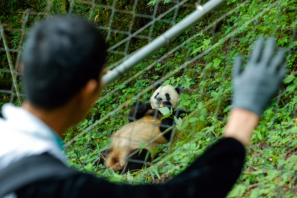 2024年6月24日,在位于大熊貓國家公園臥龍片區(qū)內(nèi)天臺山的大熊貓第二階段野化培訓(xùn)場外,工作人員給母熊貓“賢賢”投喂完食物后揮手向其告別。近年來,我國通過大力實(shí)施天然林保護(hù)、野生動(dòng)植物保護(hù)和大熊貓國家公園建設(shè)等,保護(hù)大熊貓及其棲息地,成效顯著。大熊貓野外種群總量已從20世紀(jì)80年代的約1100只增長到近1900只。