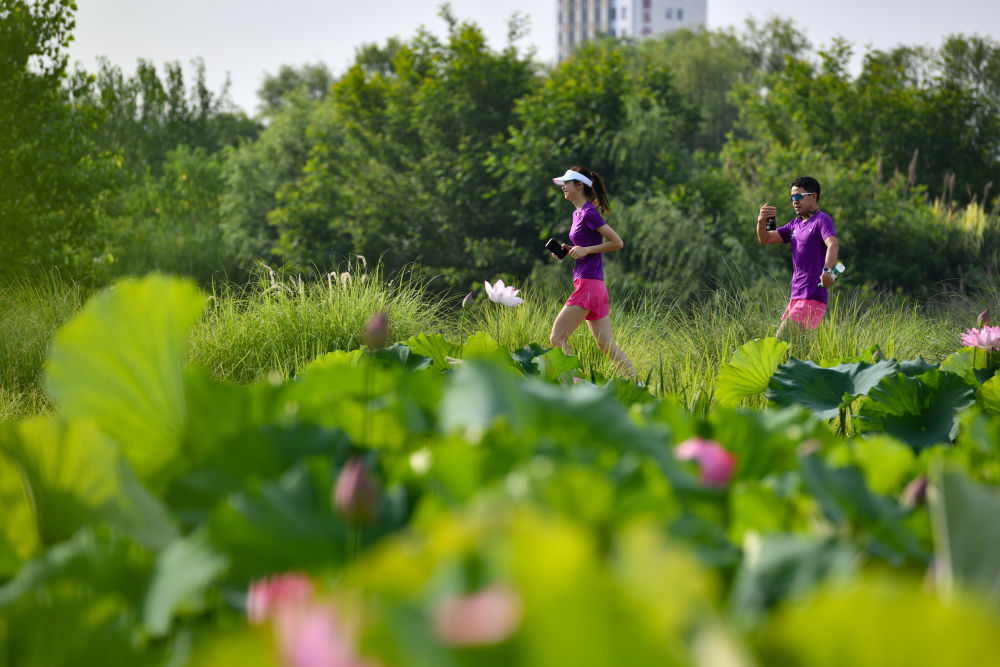 2024年6月23日,市民在陜西省漢中市天漢濕地公園內(nèi)運(yùn)動(dòng)休閑。漢江是長江的最大支流,是南水北調(diào)中線工程的重要水源。近年來,漢中市加強(qiáng)對漢江源頭和沿岸濕地生態(tài)保護(hù)修復(fù),構(gòu)建人水和諧共生的美麗城市,確保“一泓清水永續(xù)北上”。