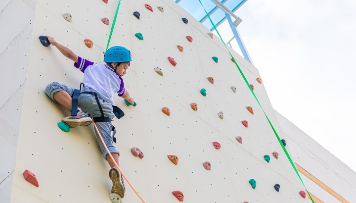 浙江臺(tái)州,正在學(xué)習(xí)攀巖課程的小學(xué)生